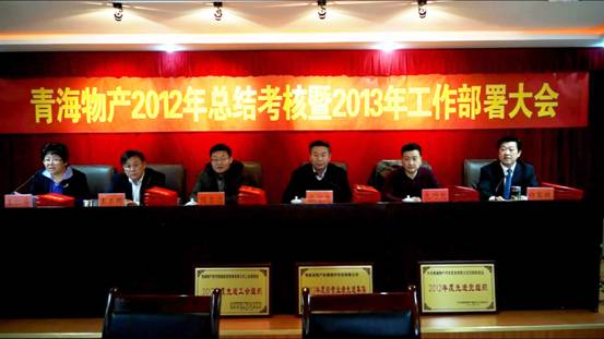 2013年1月25日,集團總公司在集團一號會議室召開"青海物產(chǎn)2012年總結(jié)考核暨2013年工作部署大會"。集團領(lǐng)導(dǎo),集團中層干部,受表彰的先進個人、職工代表及退休干部代表參加會議,省國資委領(lǐng)導(dǎo)張守杰帶領(lǐng)考核小組蒞臨大會。